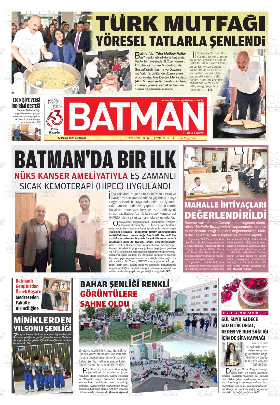 Batman Gazetesi’nin 22 Mayıs tarihli manşeti