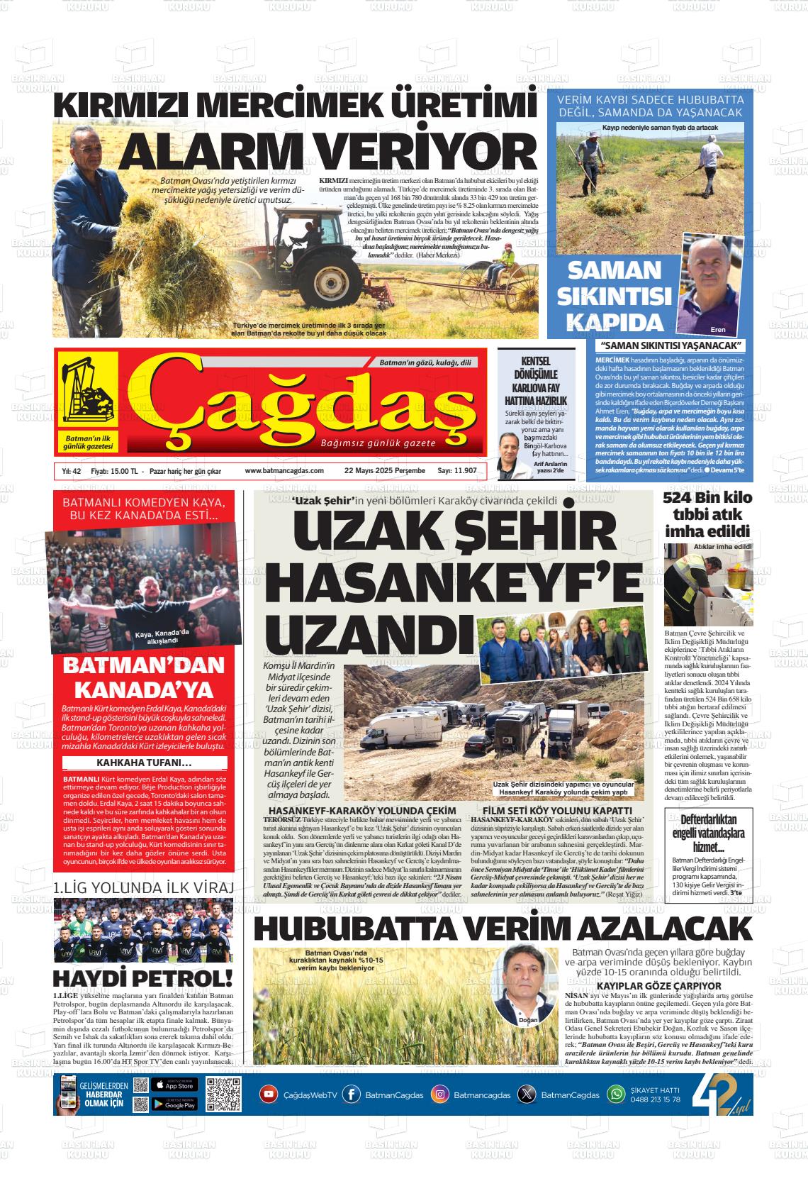 Batman Çağdaş Gazetesi’nin 22 Mayıs tarihli manşeti
