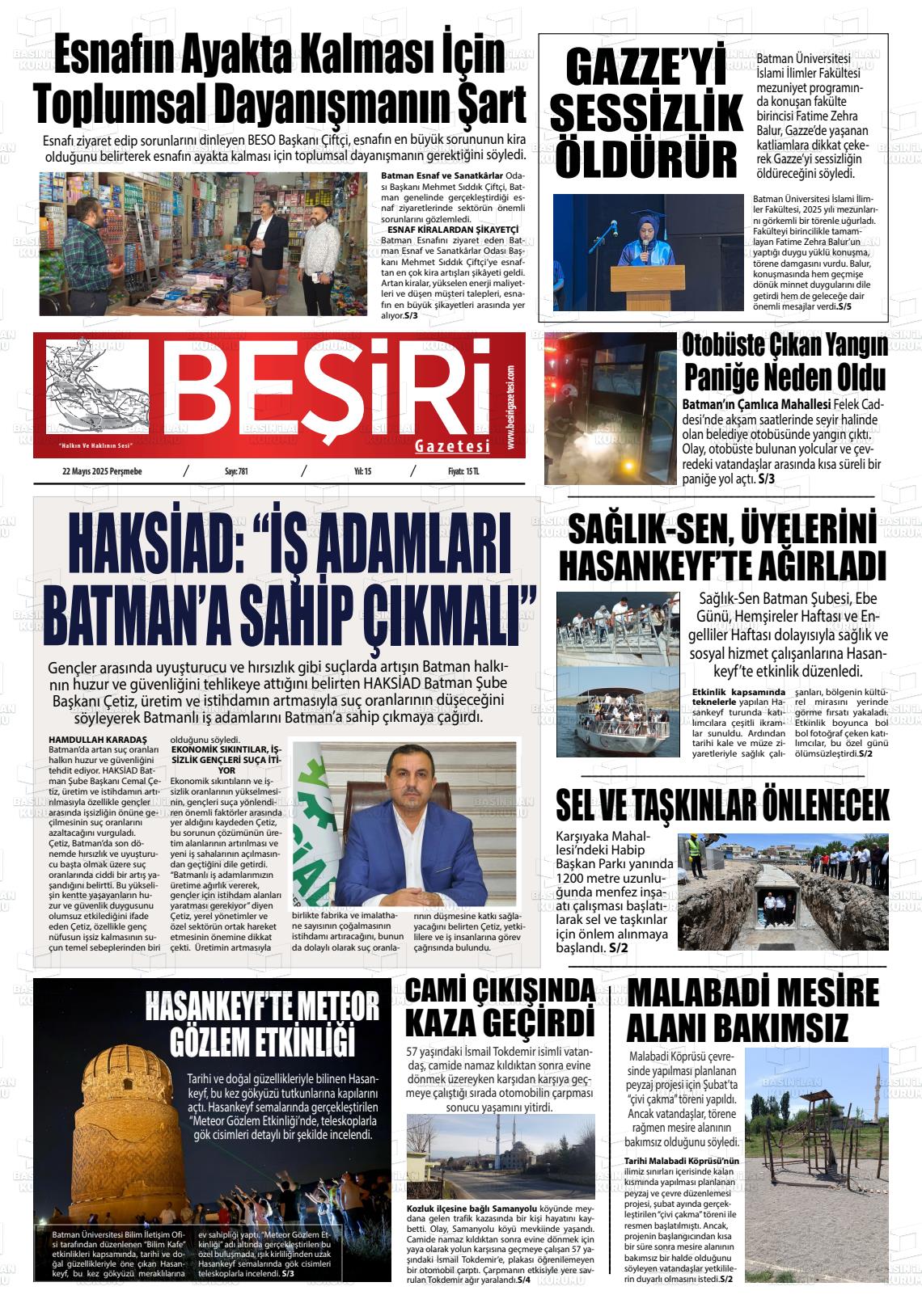 Beşiri Gazetesi’nin 22 Mayıs tarihli manşeti