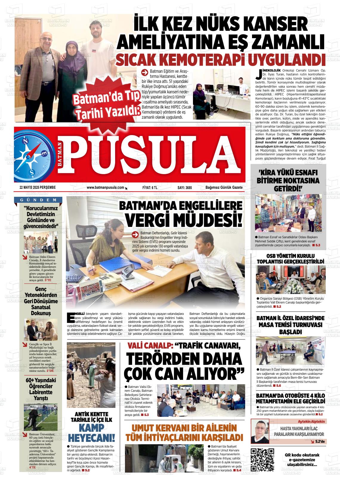 Batman Pusula Gazetesi’nin 22 Mayıs tarihli manşeti