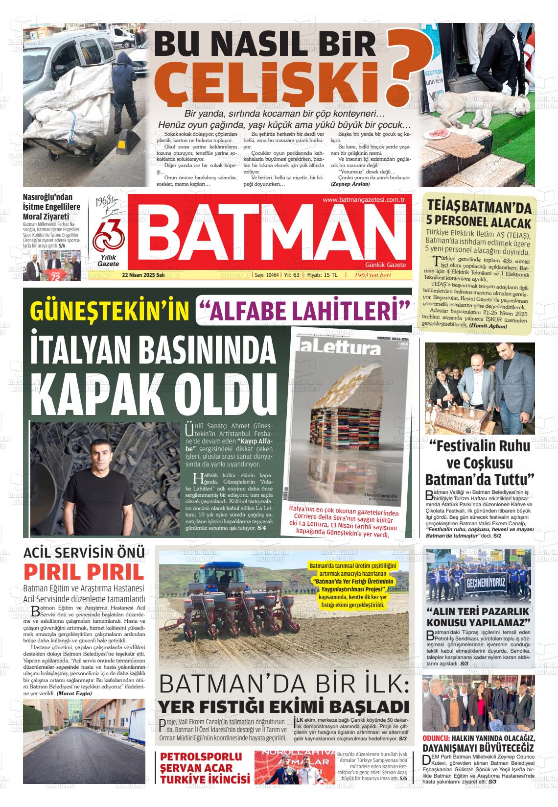 Batman Gazetesi’nin 22 Nisan tarihli manşeti