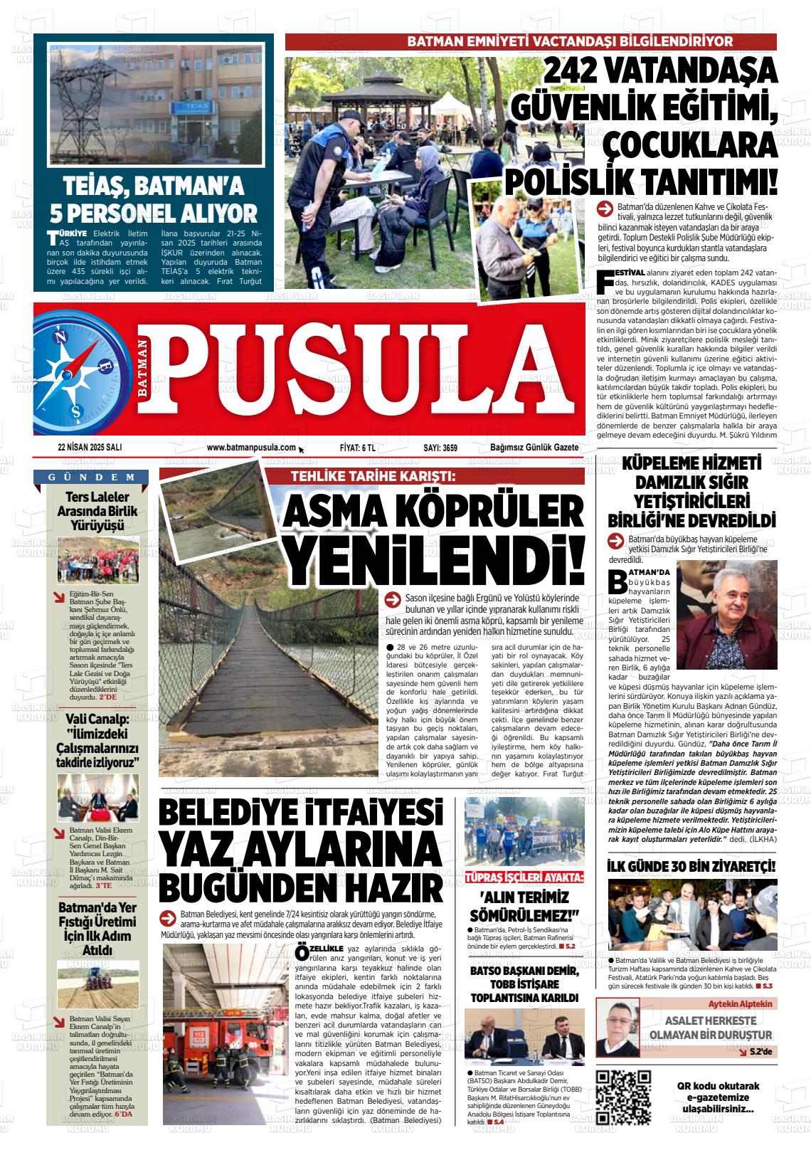 Batman Çağdaş Gazetesi’nin 22 Nisan tarihli manşeti