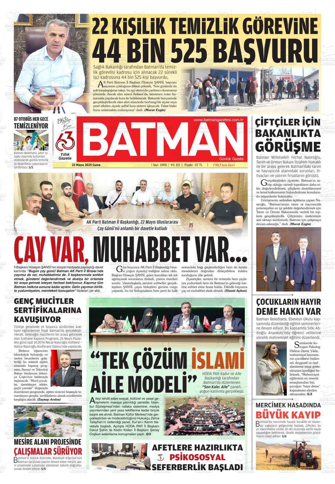 Batman Gazetesi’nin 23 Mayıs tarihli manşeti