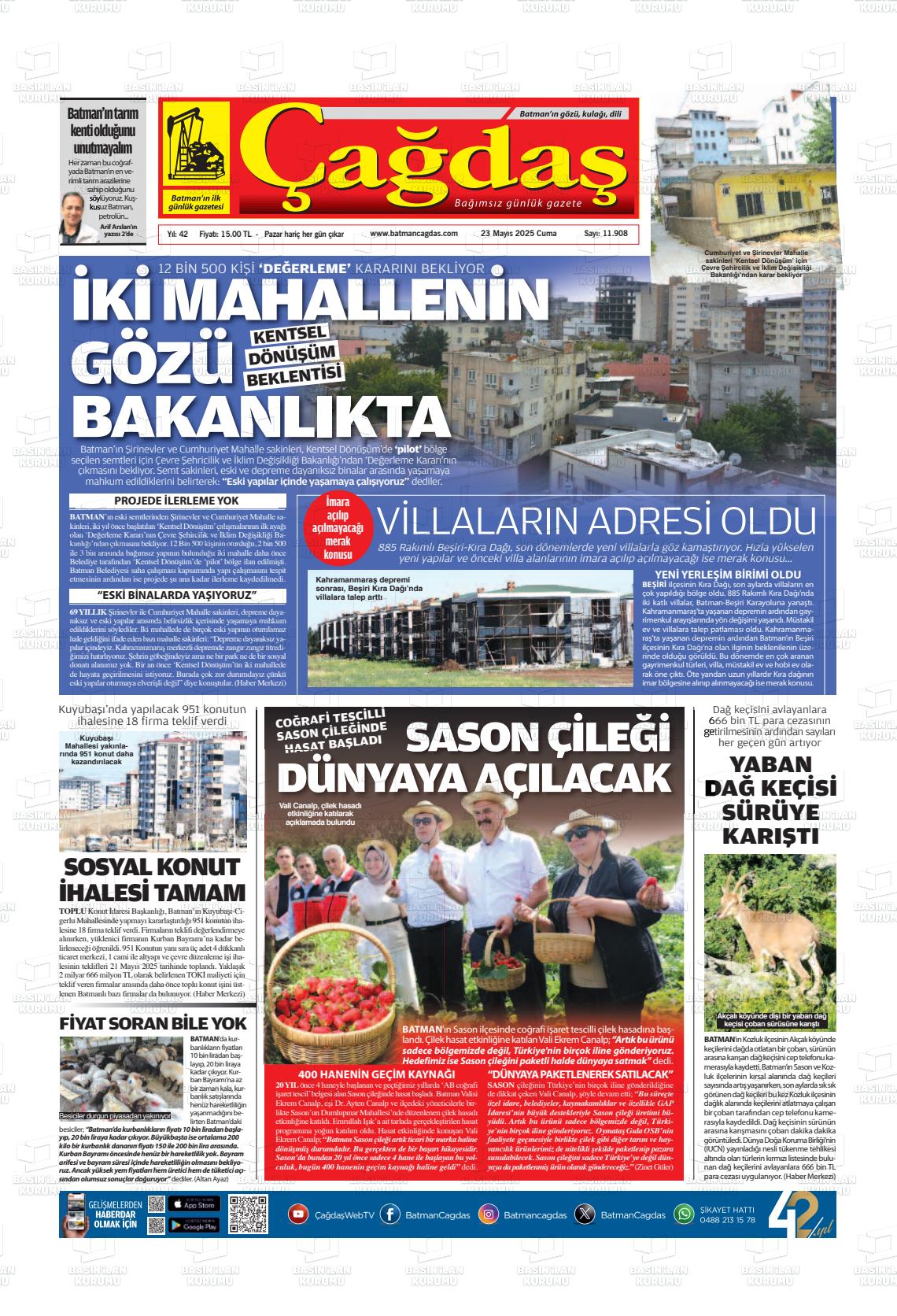 Batman Çağdaş Gazetesi’nin 23 Mayıs tarihli manşeti
