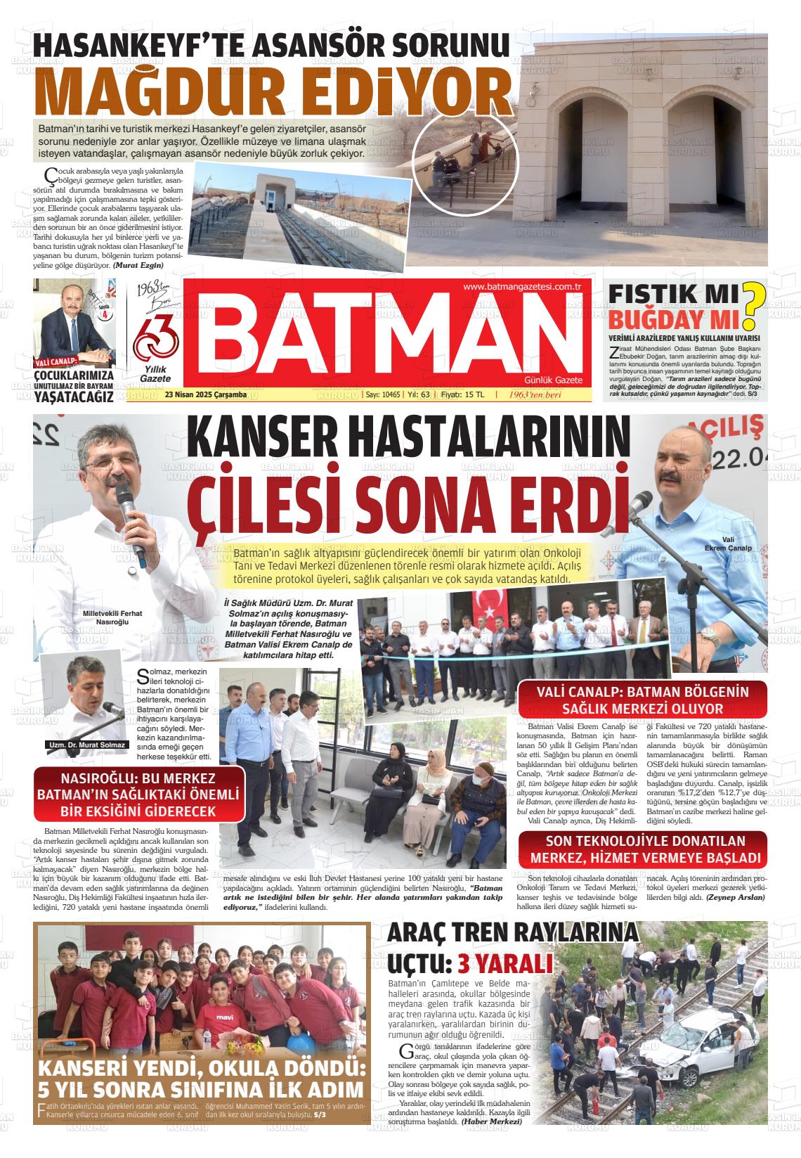 Batman Gazetesi’nin 23 Nisan tarihli manşeti