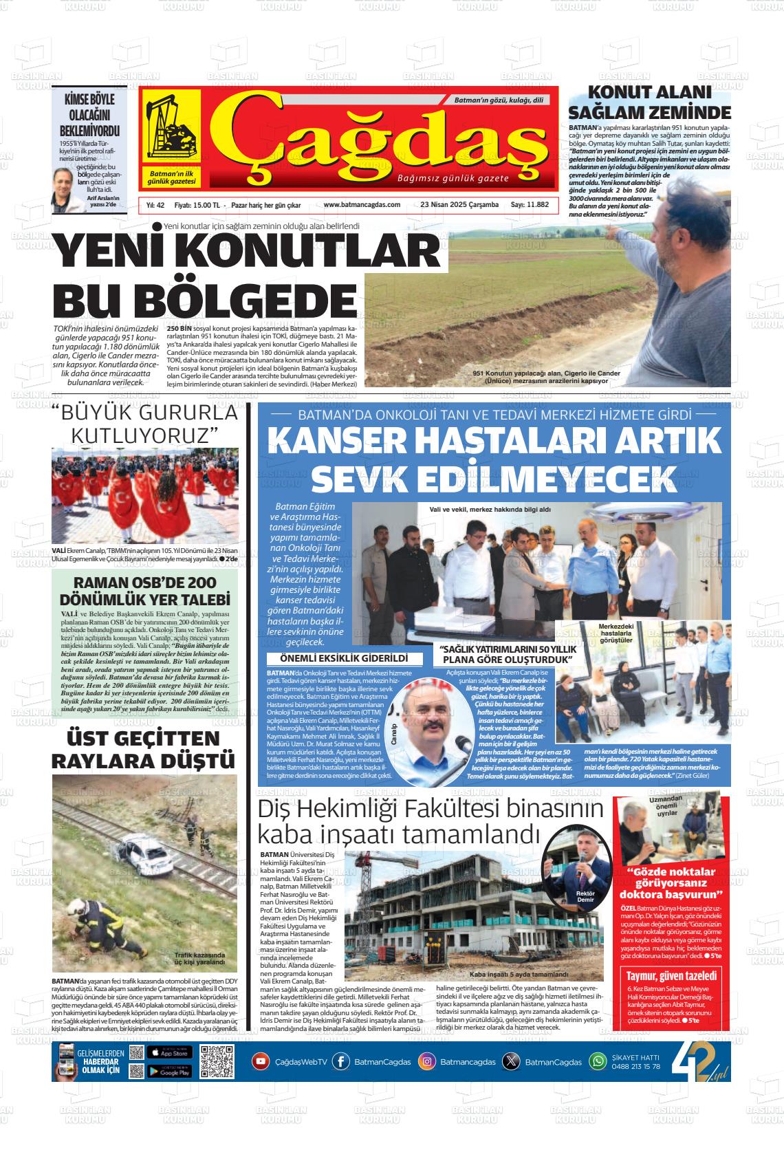 Batman Çağdaş Gazetesi’nin 23 Nisan tarihli manşeti