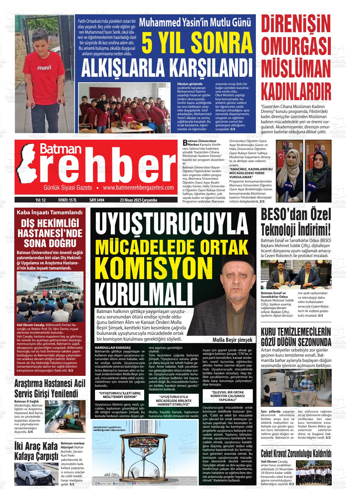 Gazetemiz Batman Rehber’in 23 Nisan tarihli manşeti