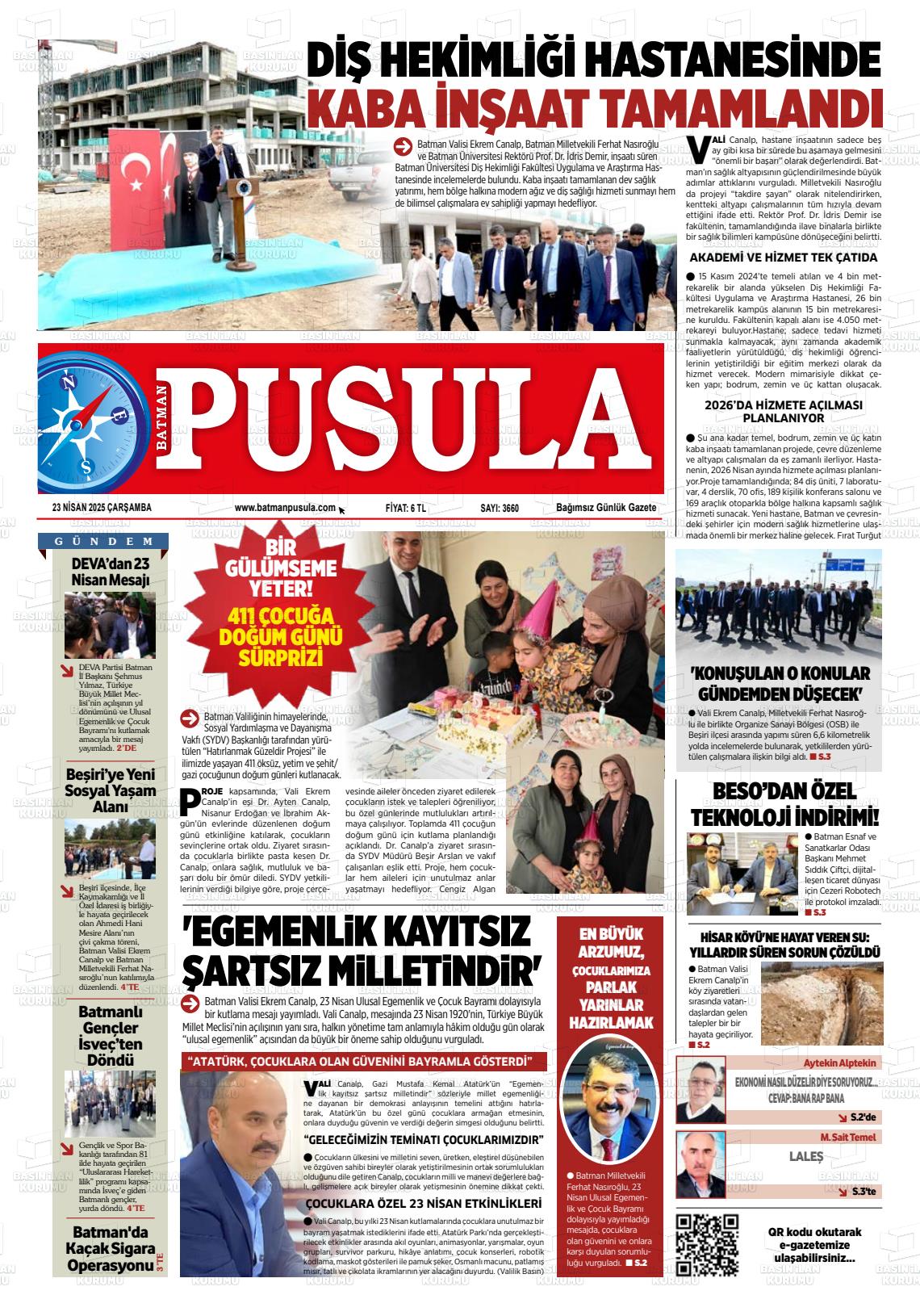 Batman Pusula Gazetesi’nin 23 Nisan tarihli manşeti