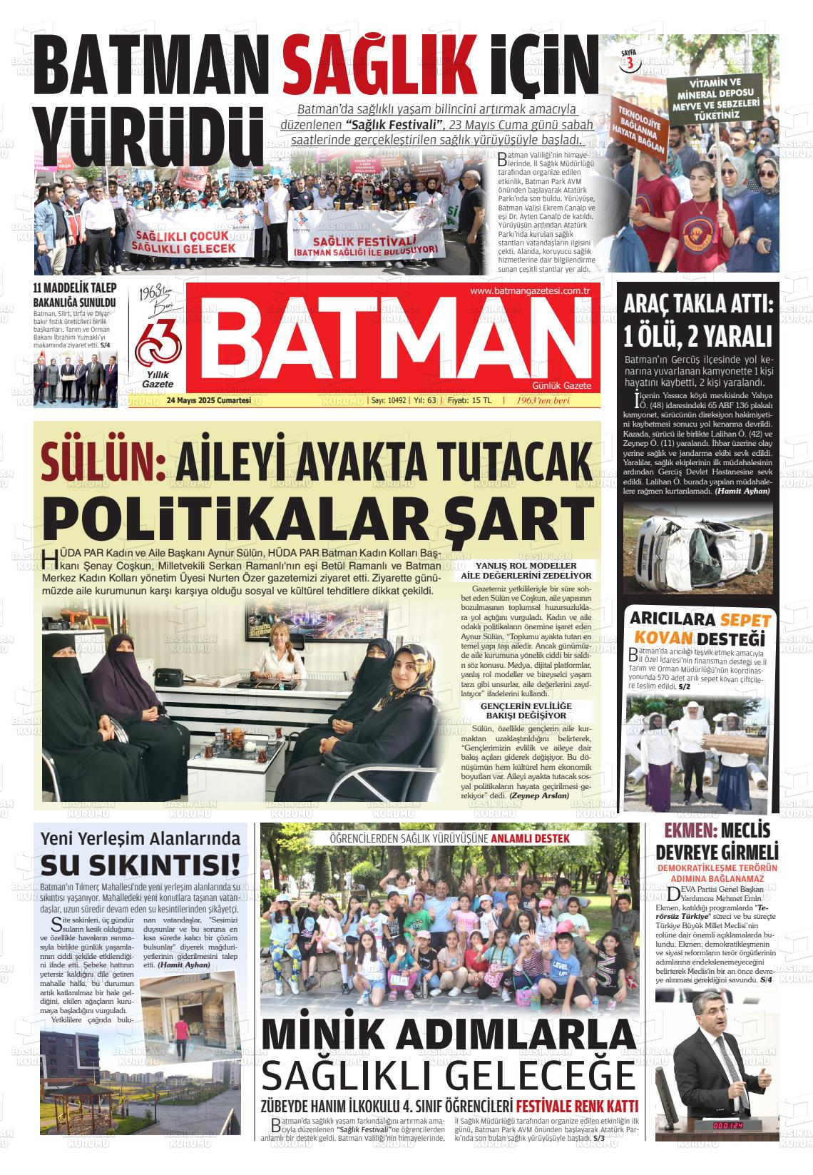 Batman Gazetesi’nin 24 Mayıs tarihli manşeti