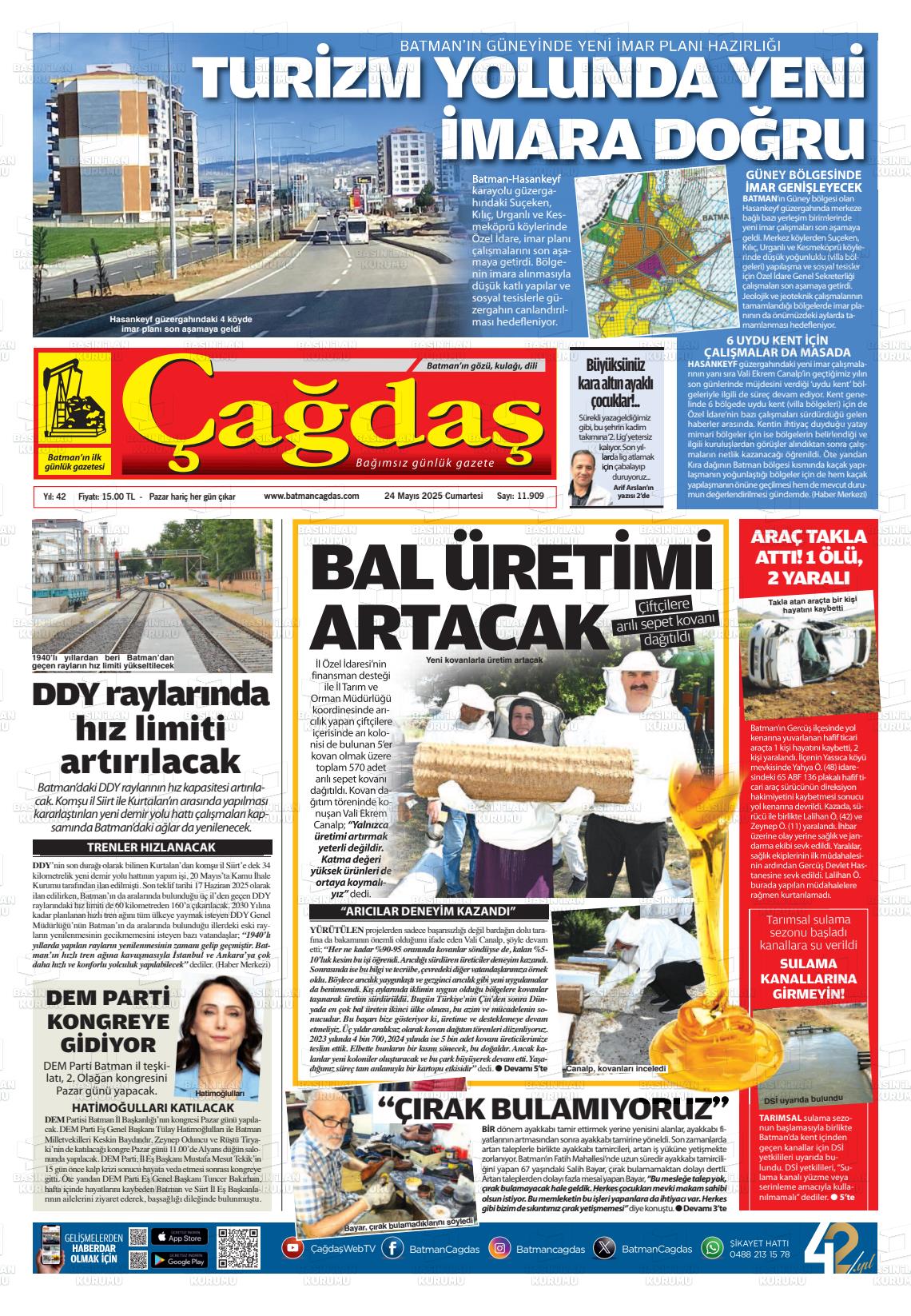 Batman Çağdaş Gazetesi’nin 24 Mayıs tarihli manşeti