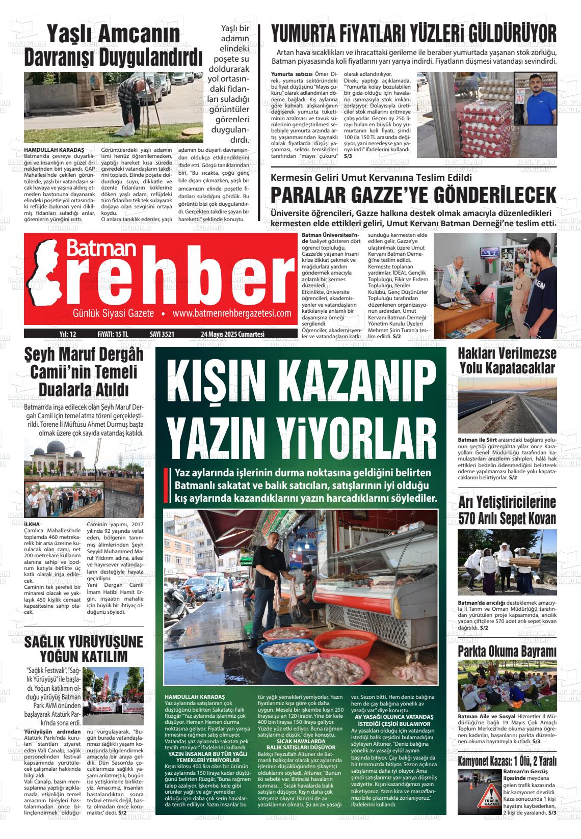 Gazetemiz Batman Rehber’in 24 Mayıs tarihli manşeti