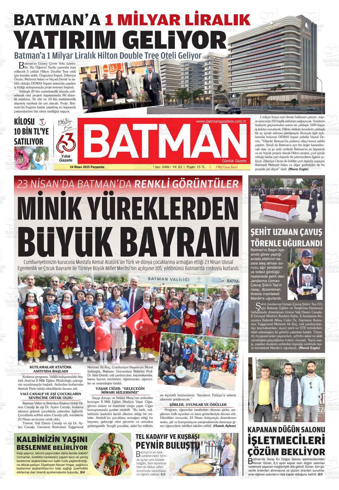 Batman Gazetesi’nin 24 Nisan tarihli manşeti