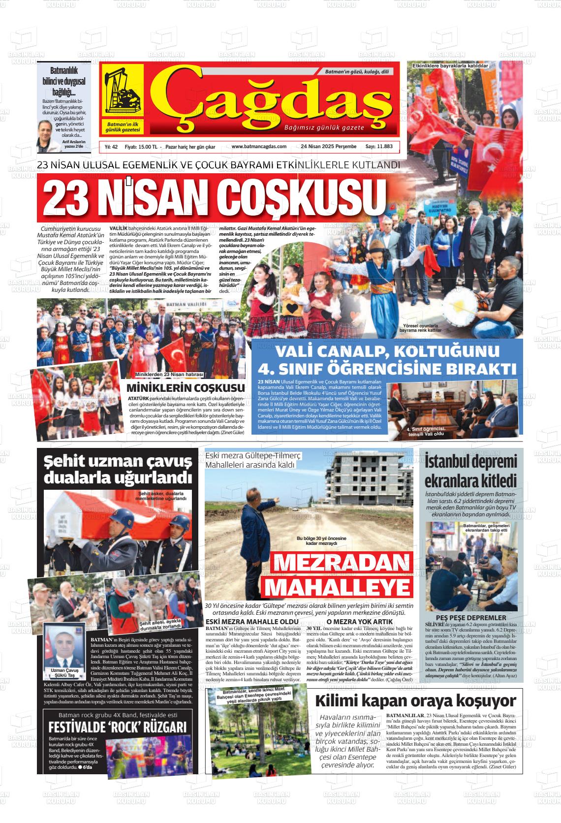 Batman Çağdaş Gazetesi’nin 24 Nisan tarihli manşeti