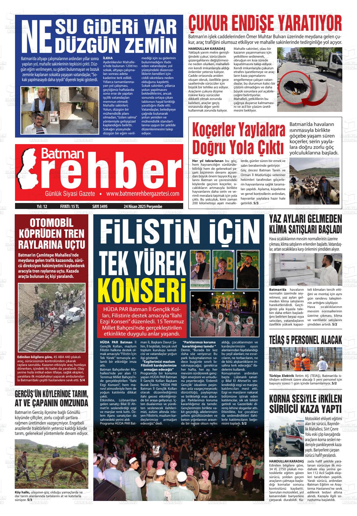 Gazetemiz Batman Rehber’in 24 Nisan tarihli manşeti