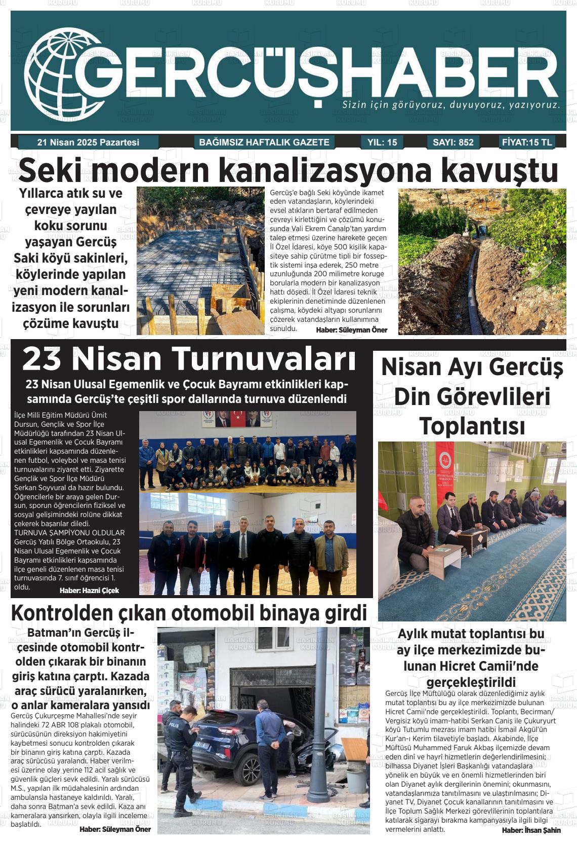 Gercüş Haber Gazetesi’nin 24 Nisan tarihli manşeti
