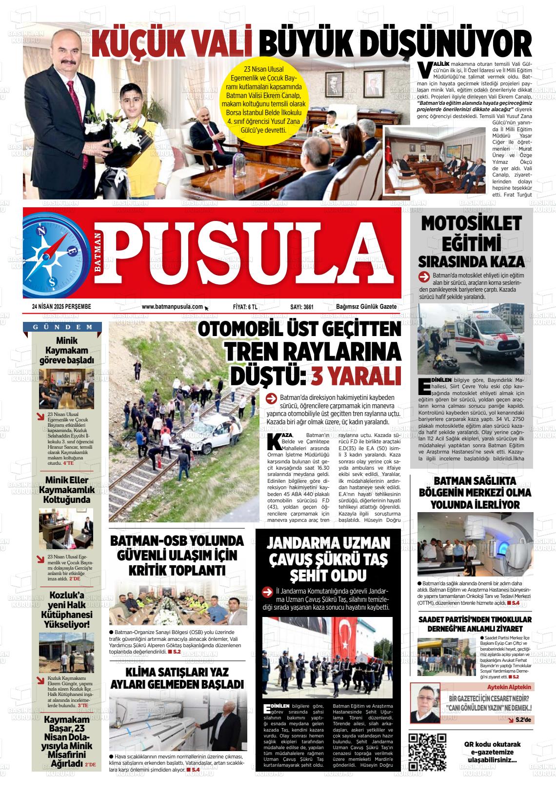 Batman Pusula Gazetesi’nin 24 Nisan tarihli manşeti