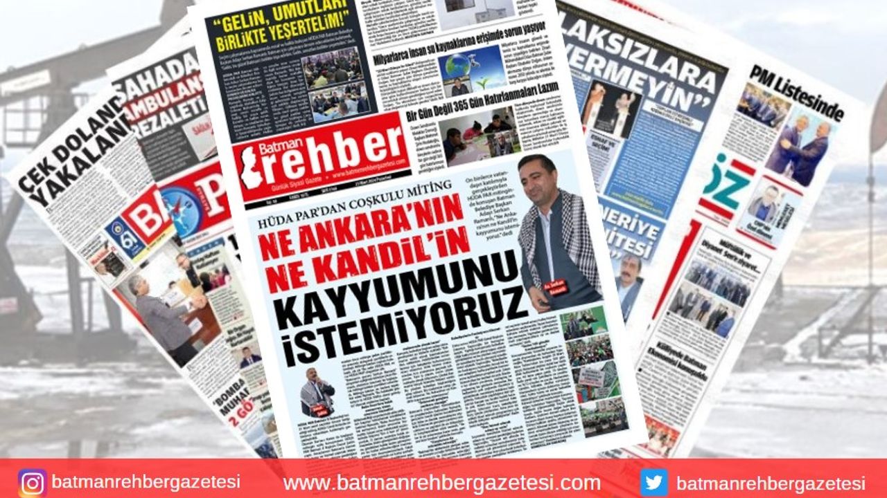 Gazetemiz Batman Rehber’in 25 Mart tarihli manşeti