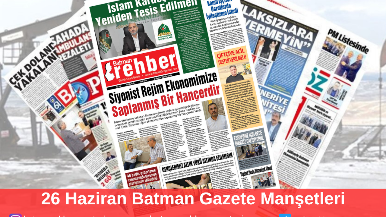İşte 26 Haziran Batman Gazete Manşetleri…