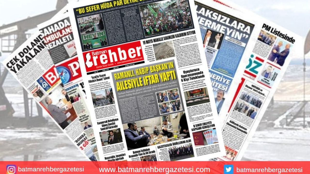 Gazetemiz Batman Rehber’in 26 Mart tarihli manşeti