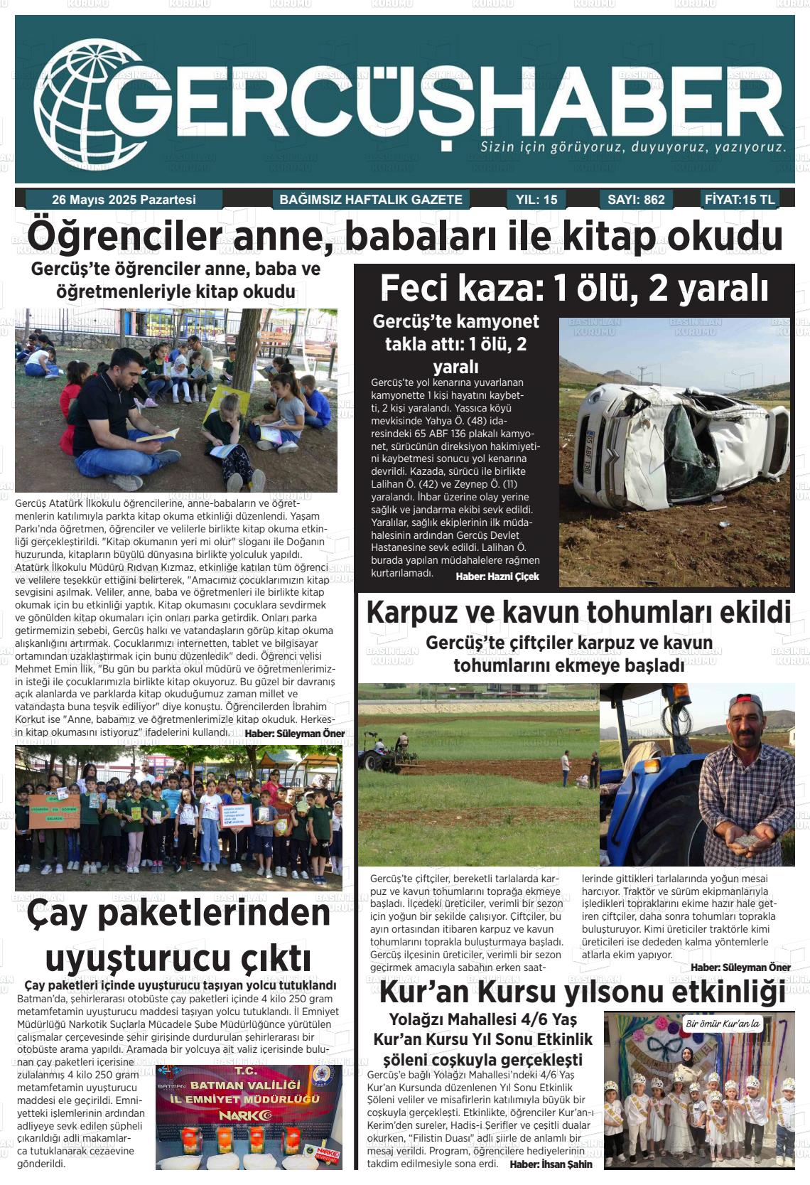 Gercüş Haber Gazetesi’nin 26 Mayıs tarihli manşeti