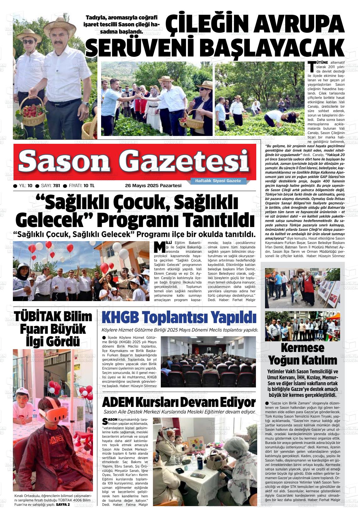 Sason Gazetesi’nin 26 Mayıs tarihli manşeti