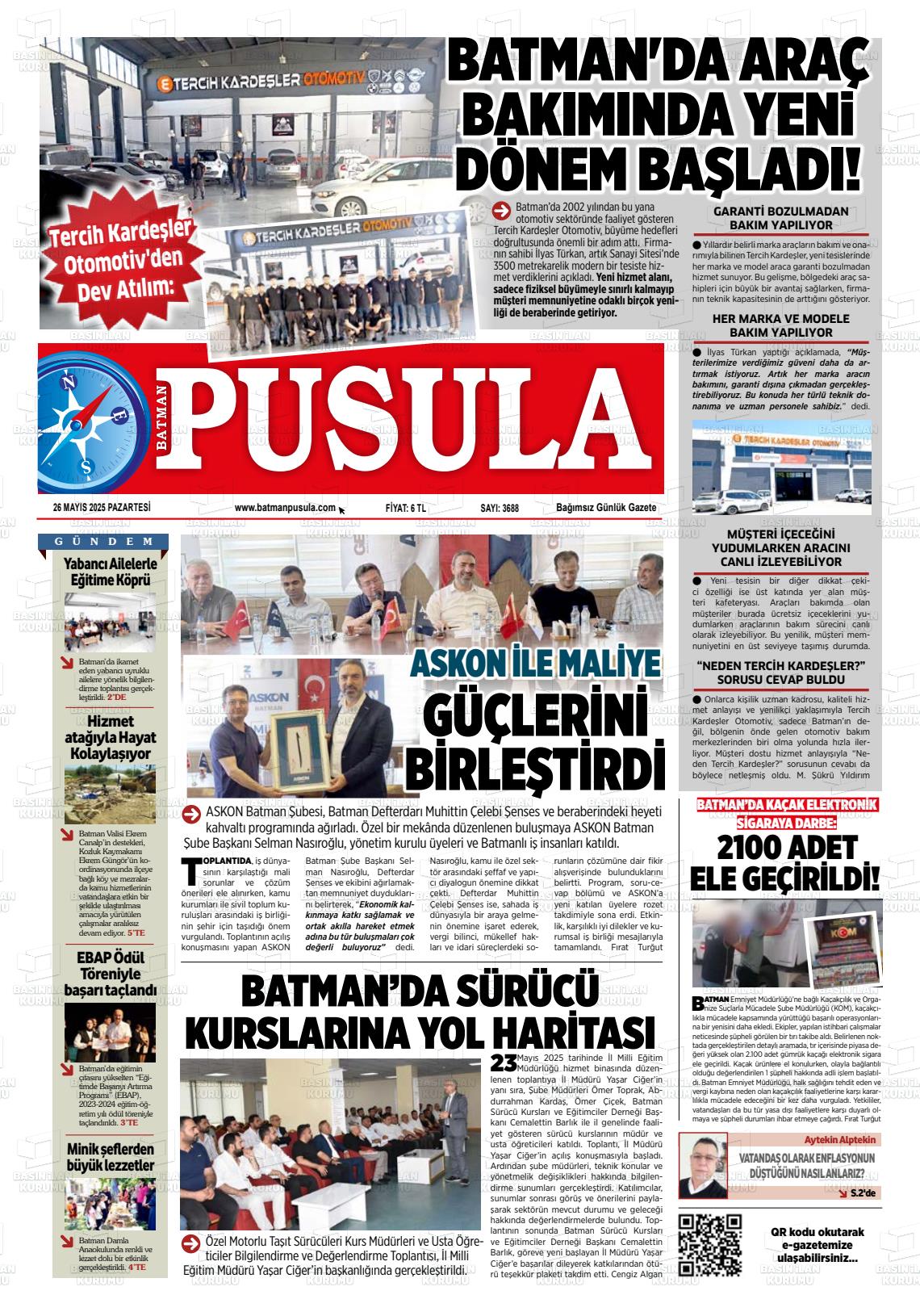 Batman Pusula Gazetesi’nin 26 Mayıs tarihli manşeti
