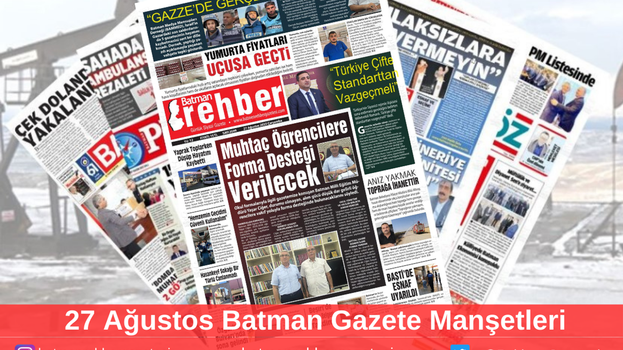 İşte 27 Ağustos Salı Batman Gazete Manşetleri…