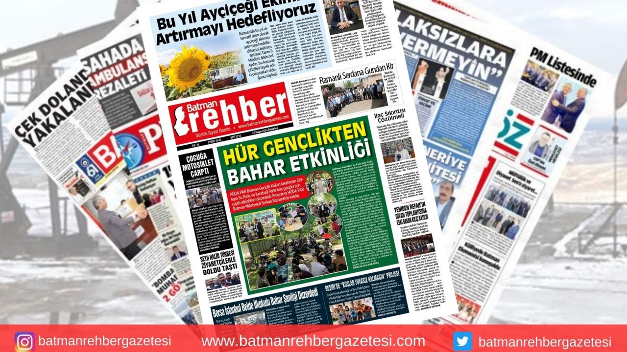Gazetemiz Batman Rehber’in 27 Mayıs tarihli manşeti