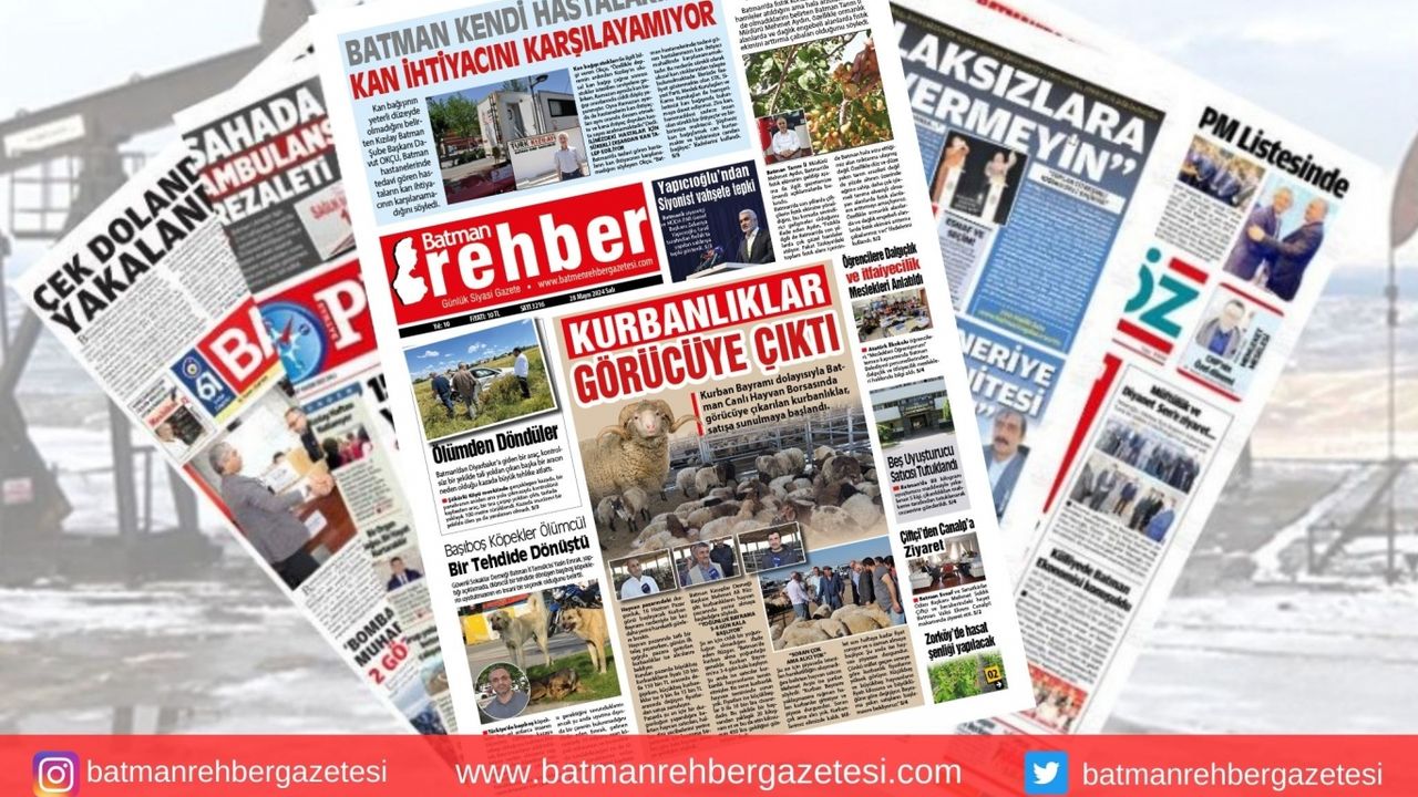 Gazetemiz Batman Rehber’in 28 Mayıs tarihli manşeti