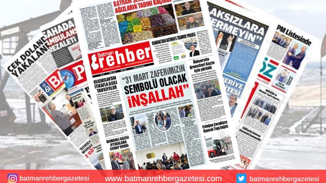 Gazetemiz Batman Rehber’in 29 Mart tarihli manşeti