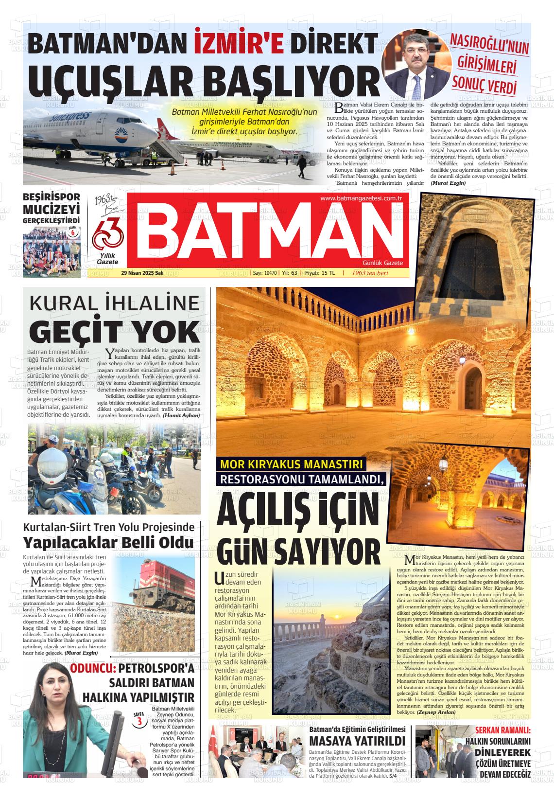 Batman Gazetesi’nin 29 Nisan tarihli manşeti