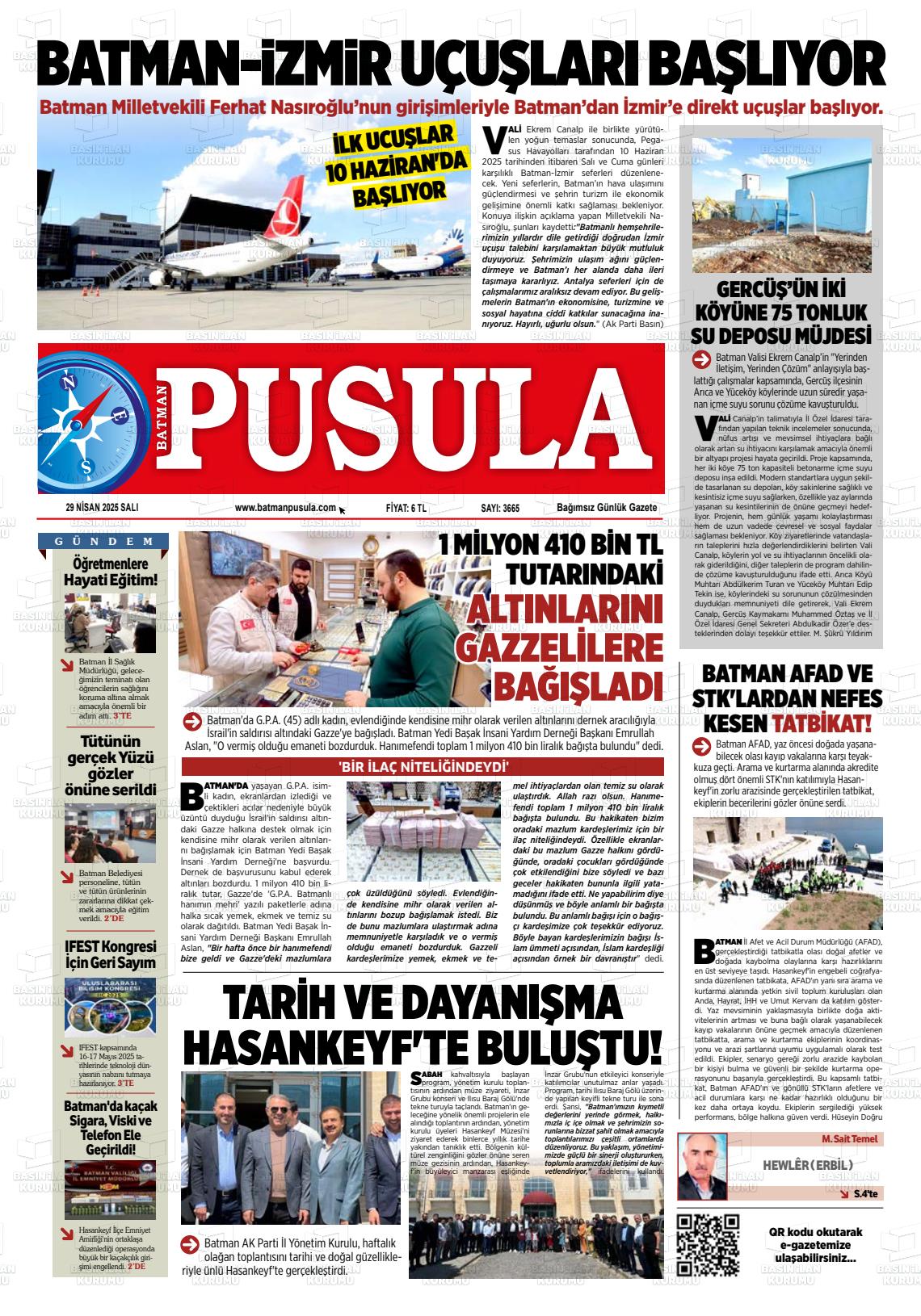 Batman Pusula Gazetesi’nin 29 Nisan tarihli manşeti
