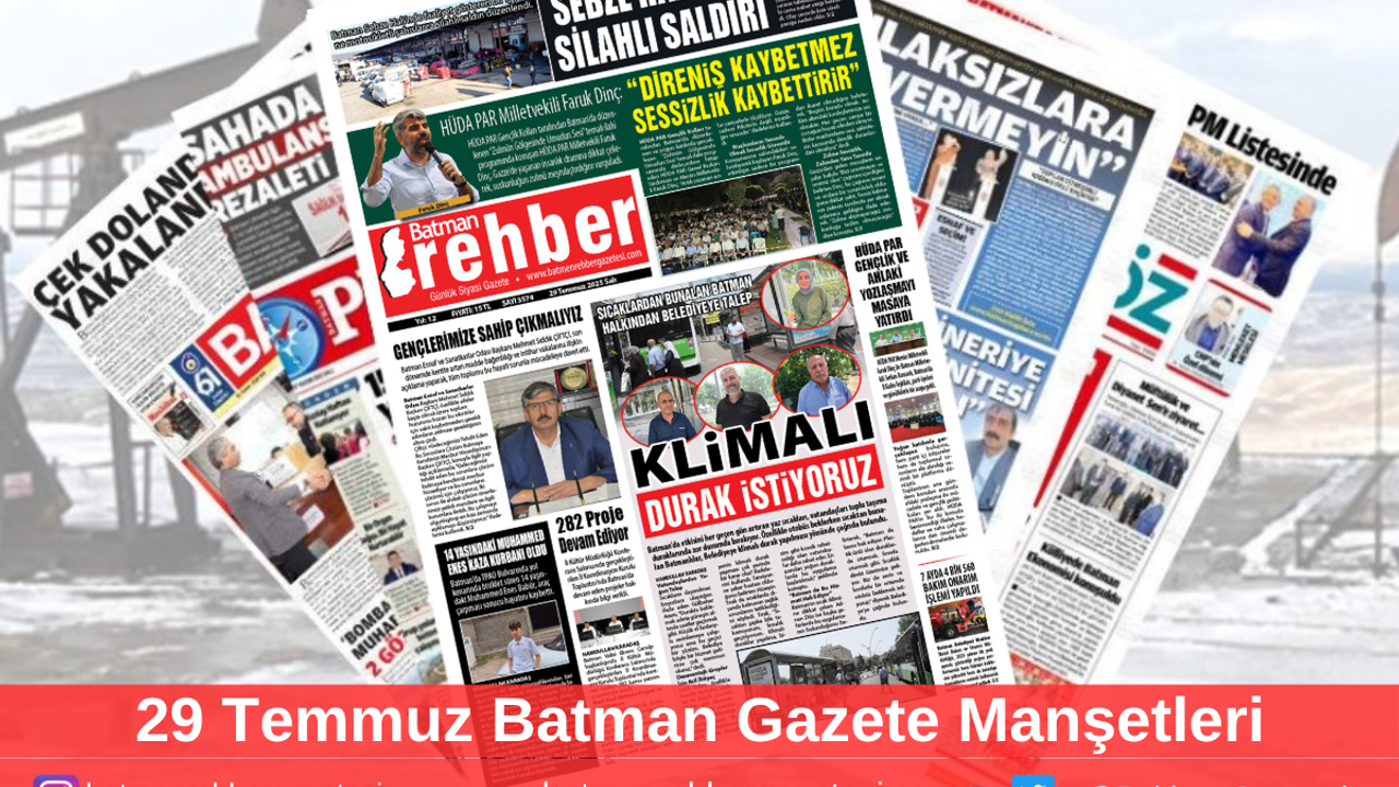 Peki, Batman’da yayınlanan yerel gazetelerin bugün birinci sayfalarında hangi haberler yer buldu? İşte 29 Temmuz Salı günü yayınlanan gazetelerin birinci sayfaları…