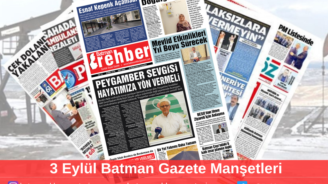 İşte 3 Eylül Çarşamba Batman Gazete Manşetleri…