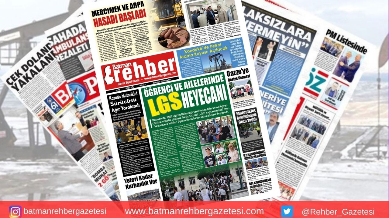 Gazetemiz Batman Rehber’in 3 Haziran tarihli manşeti
