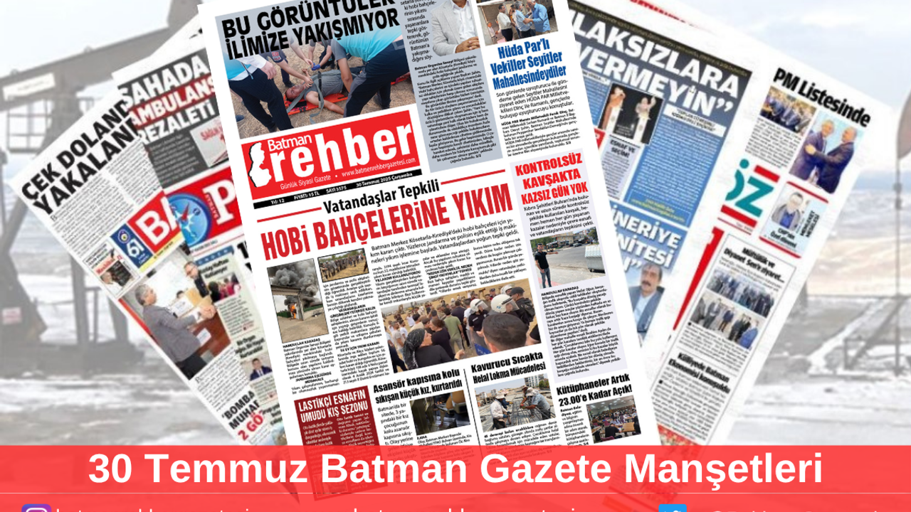 İşte 30 Temmuz Çarşamba Batman Gazete Manşetleri…