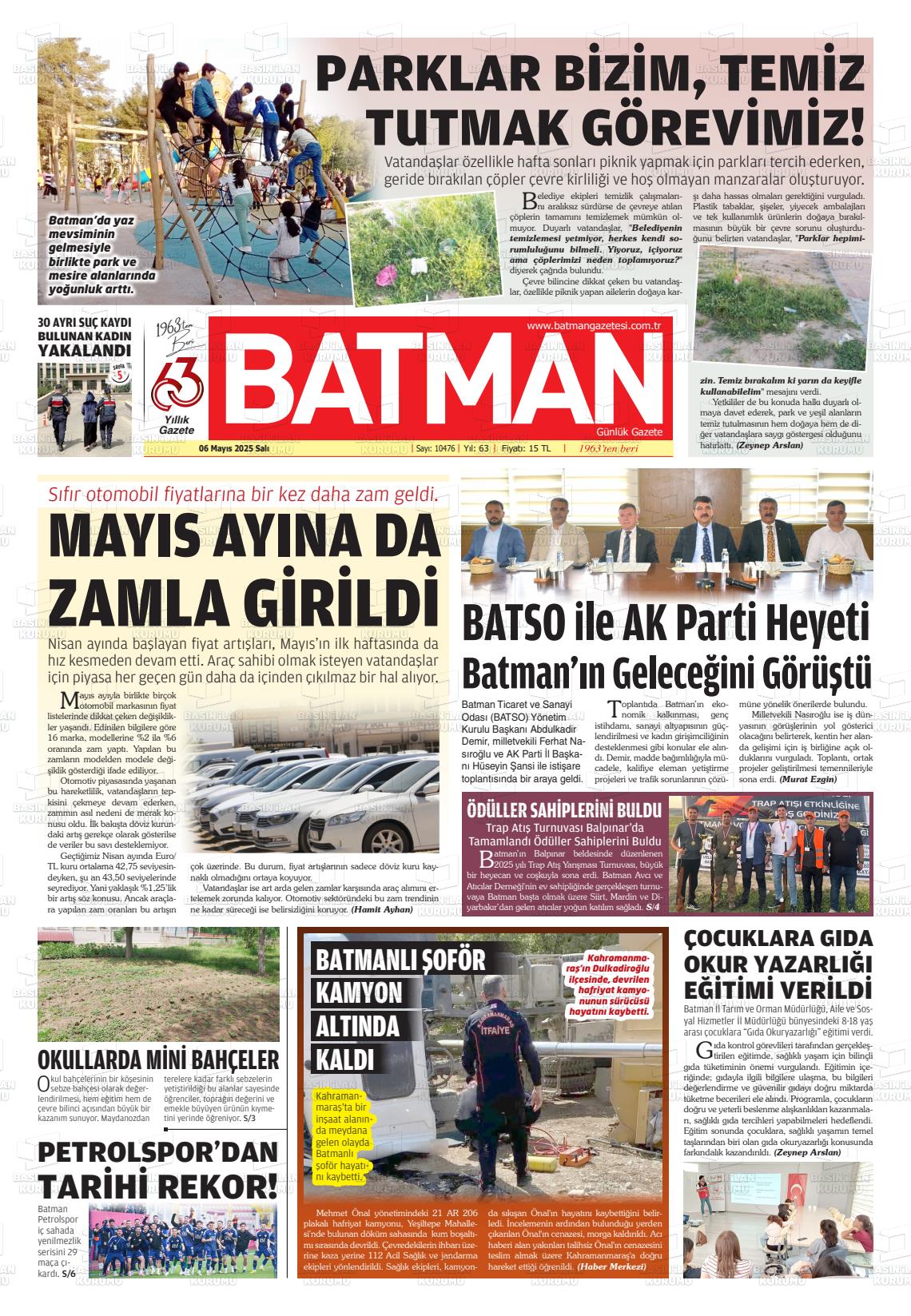 Batman Gazetesi’nin 6 Mayıs tarihli manşeti