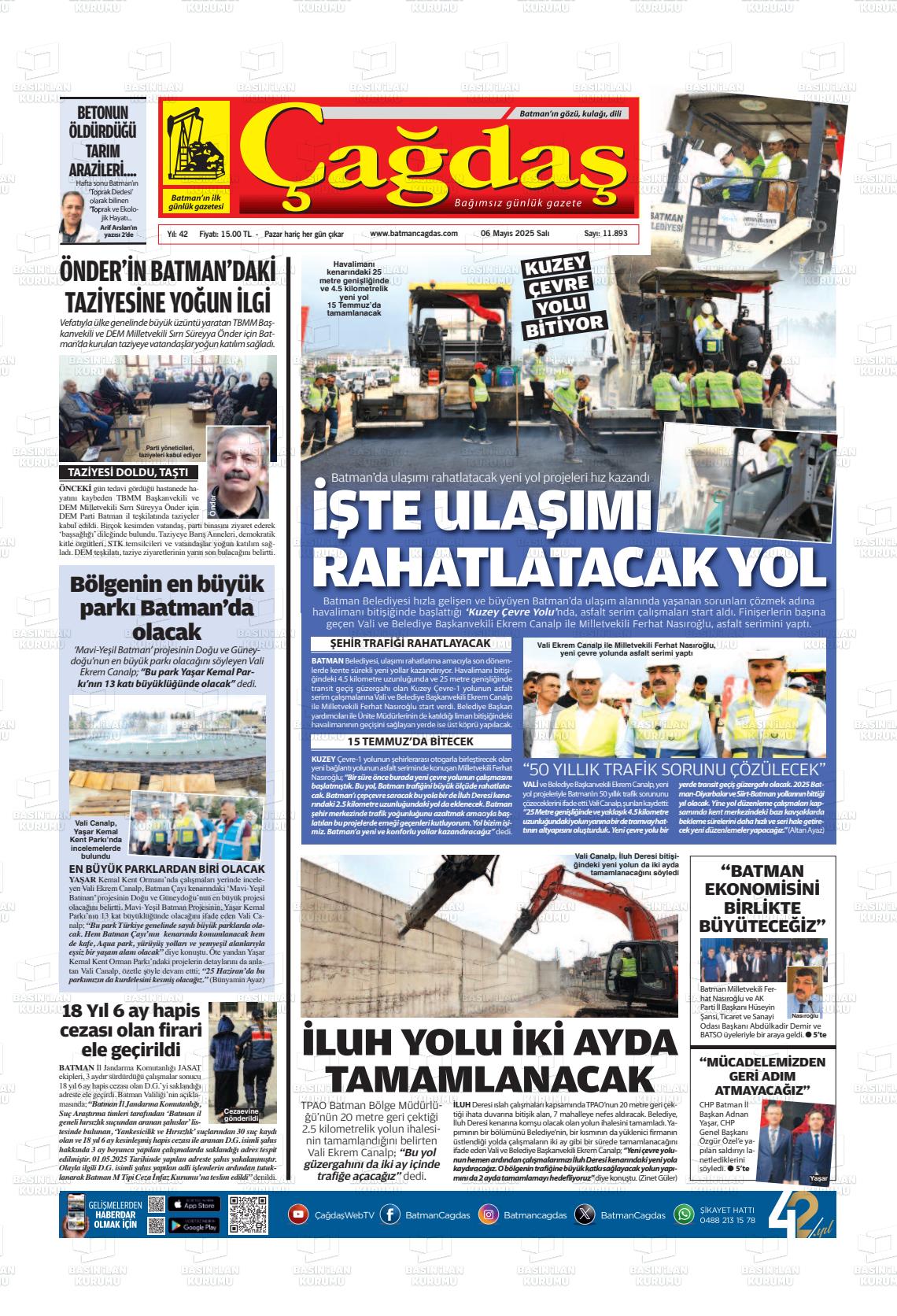 Batman Çağdaş Gazetesi’nin 6 Mayıs tarihli manşeti