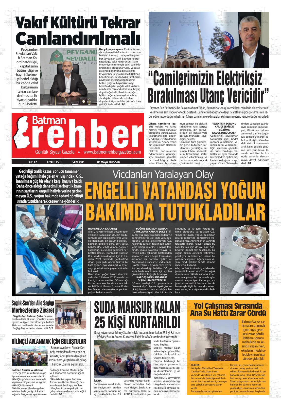 Gazetemiz Batman Rehber’in 6 Mayıs tarihli manşeti
