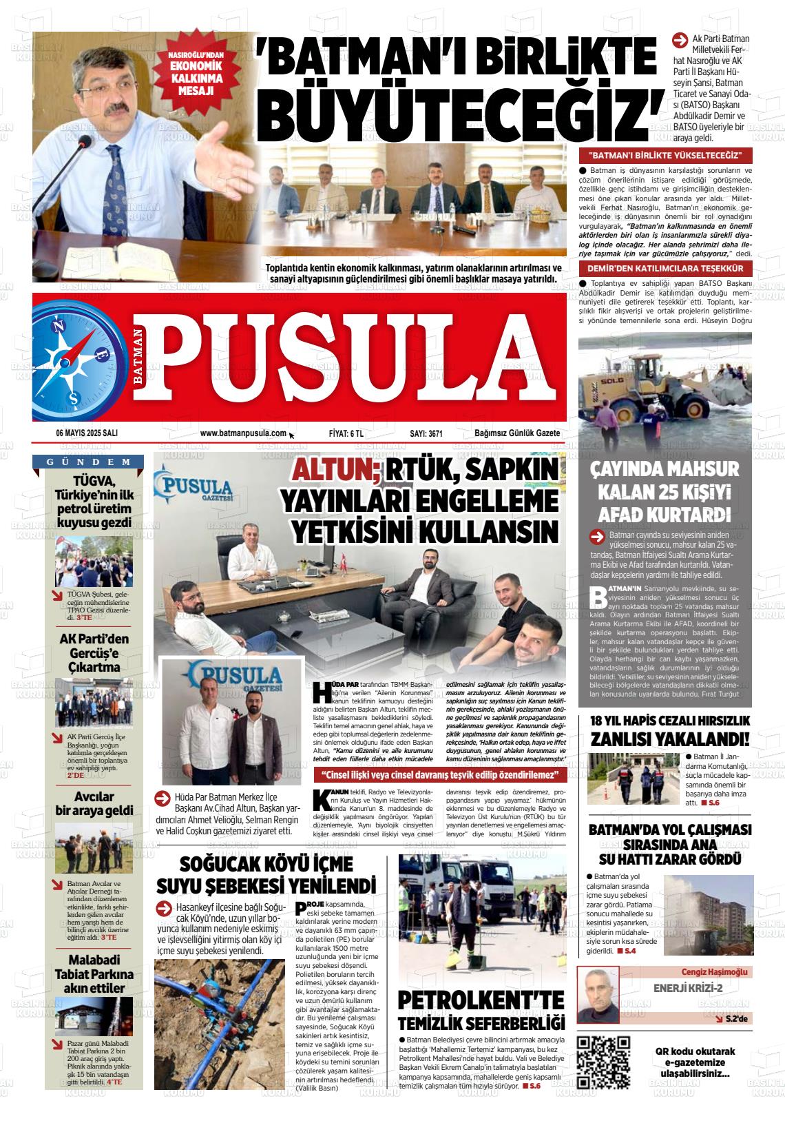 Batman Pusula Gazetesi’nin 6 Mayıs tarihli manşeti