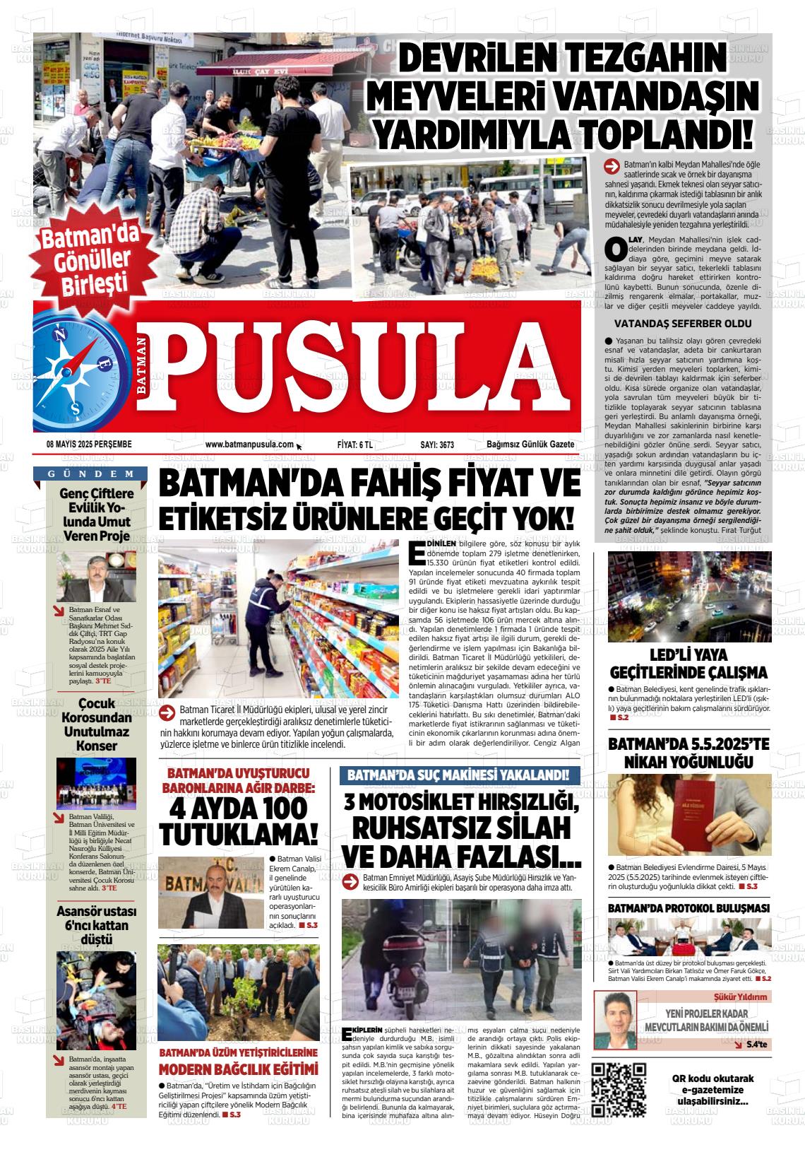 Batman Pusula Gazetesi’nin 8 Mayıs tarihli manşeti