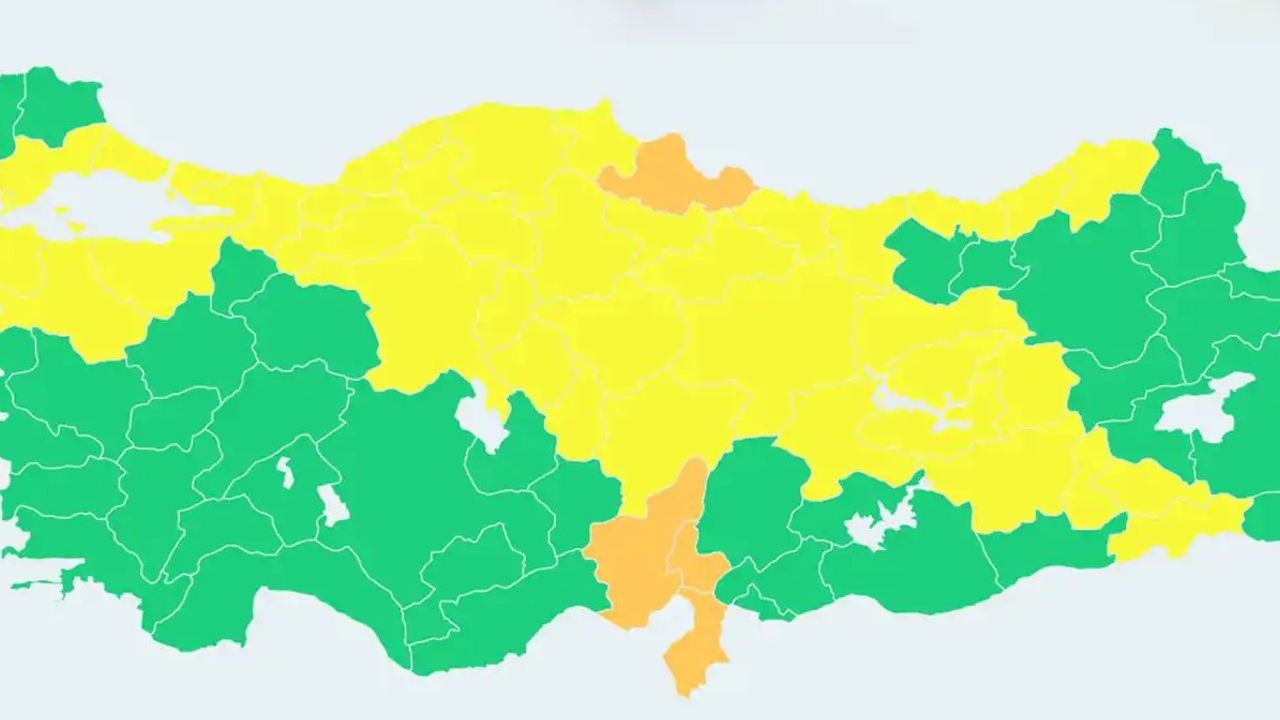 alınan son bilgilere ve yapılan değerlendirmelere göre; 4 ilimiz için turuncu,