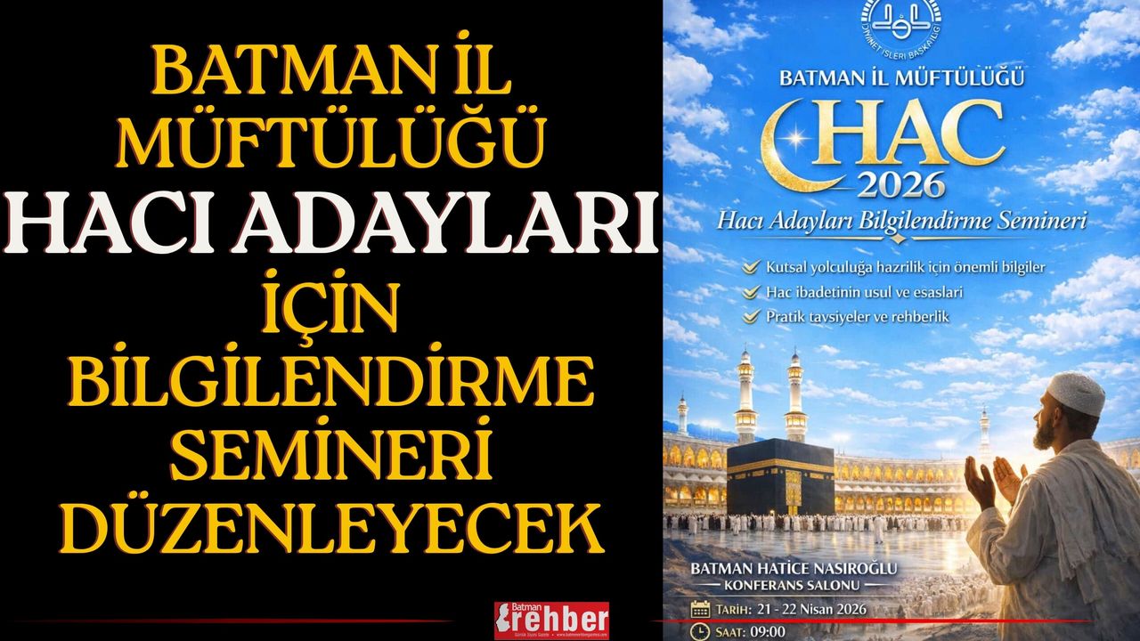 İl Müftülüğü tarafından yapılan duyuruya göre seminerler; 21 - 22 Nisan 2026 tarihlerinde gerçekleştirilecek. Her iki gün de saat 09.00'da başlayacak olan programa, Batman genelindeki tüm hacı adaylarının katılım göstermesinin, ibadetin selameti açısından önem arz ettiği belirtildi.
