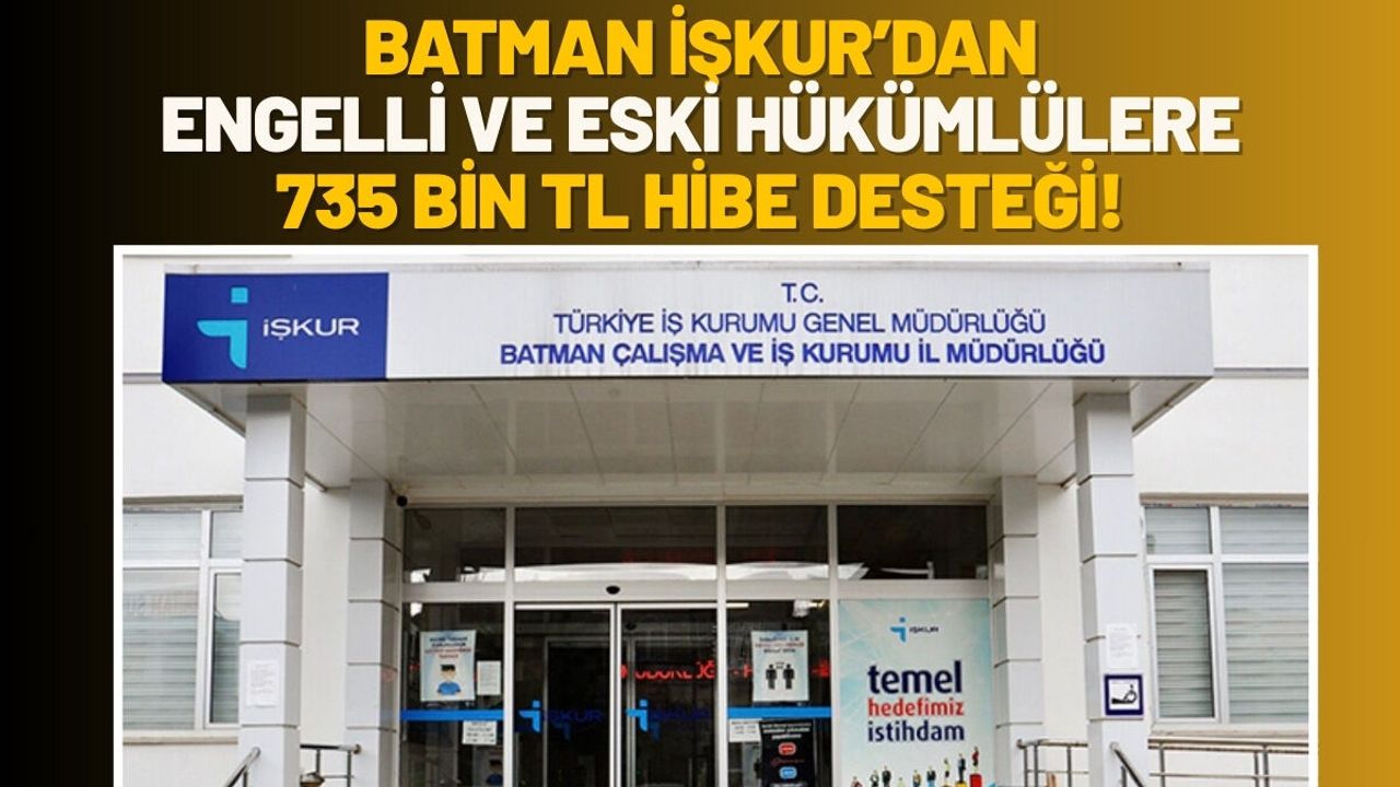 Batman'da dezavantajlı grupların iş hayatına atılmasını ve kendi ayakları üzerinde durmasını sağlayacak olan dev hibe programı için düğmeye basıldı. İŞKUR'un engelli ve eski hükümlü vatandaşların istihdama katılımını artırmak amacıyla her yıl düzenli olarak sağladığı hibe desteklerinin 2026 yılı ikinci dönem başvuru süreci resmen başladı.
