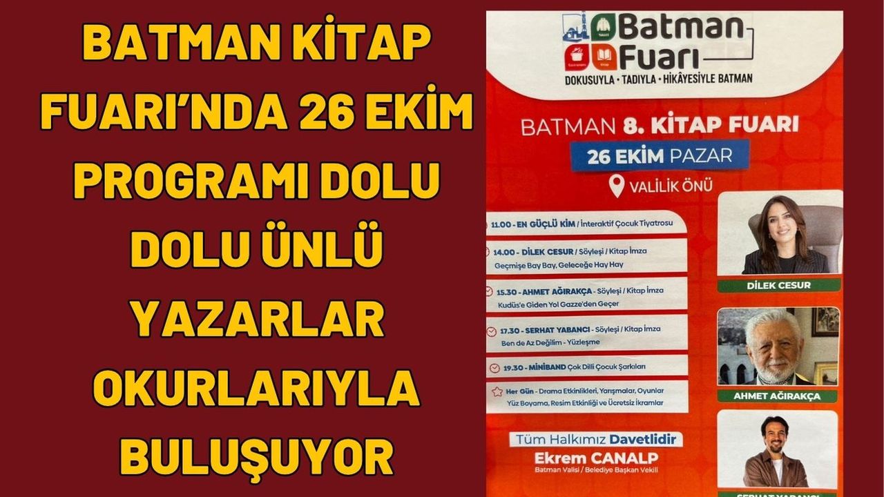 Batman Kitap Fuarı, 26 Ekim Pazar günü düzenlenecek bu özel etkinliklerle edebiyat, tarih ve kişisel gelişimi tek çatı altında buluşturacak.