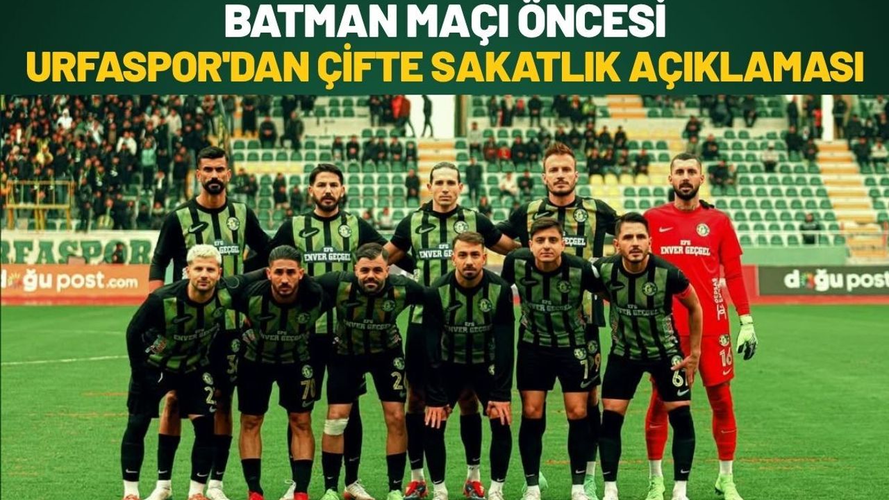 Şanlıurfaspor cephesinden yapılan resmi açıklamada, "Profesyonel futbolcularımızdan Sinan Kurumuş ve Berke Kılıç, antrenmanda yaşadıkları sakatlıklar nedeniyle yarın oynayacağımız Batman Petrolspor maçında forma giyemeyeceklerdir. Tedavilerine başlanmıştır" denildi.