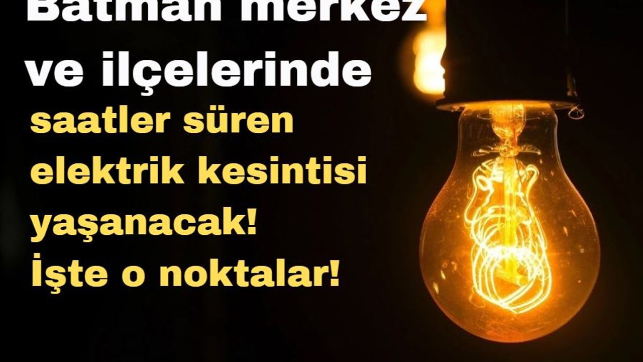 (yarın) tarihinde Batman ve ilçelerinde belirli mahalle ve köylerde planlı
