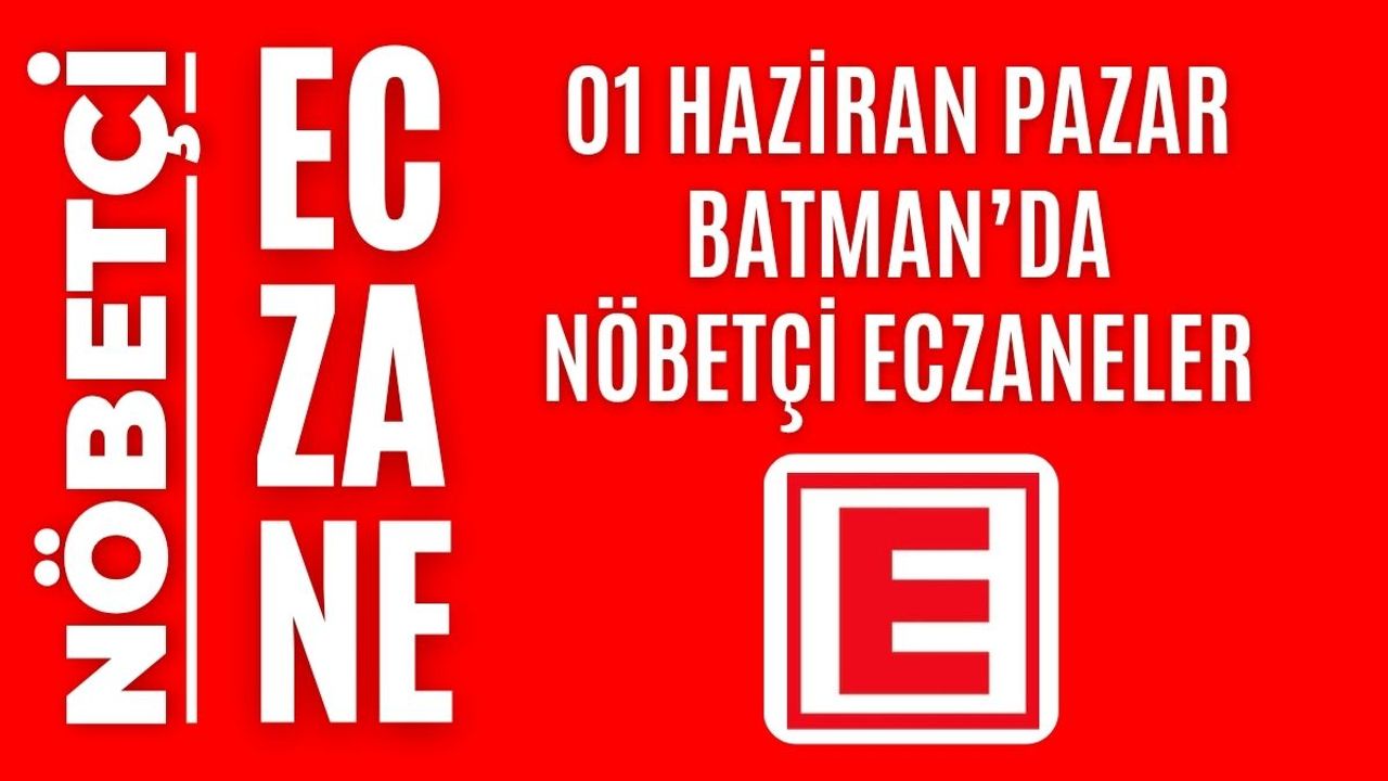 İşte Batman ve ilçelerinde 01 Haziran Pazar günü açık olacak olan tüm nöbetçi eczanelerin isimleri, adresleri ve iletişim bilgileri…