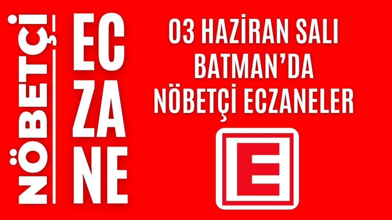 İşte Batman ve ilçelerinde 03 Haziran Salı günü açık olacak olan tüm nöbetçi eczanelerin isimleri, adresleri ve iletişim bilgileri…