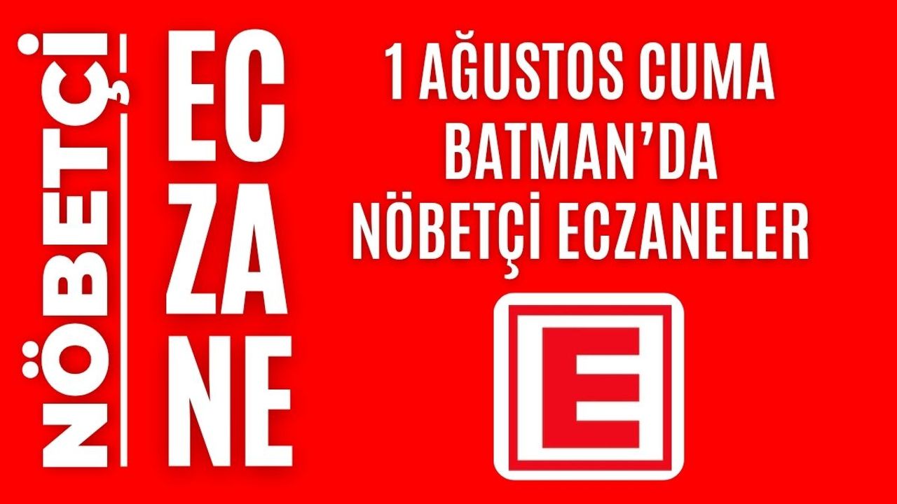 İşte Batman’da 1 Ağustos Cuma günü açık olacak olan tüm nöbetçi eczanelerin isimleri, adresleri ve iletişim bilgileri…